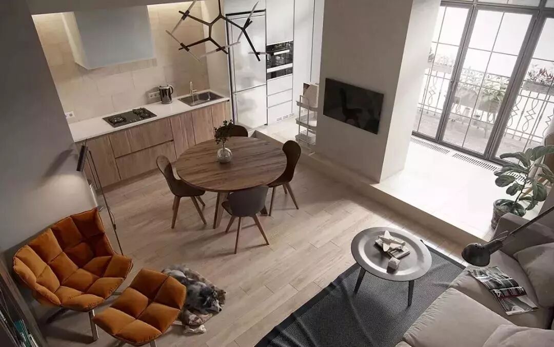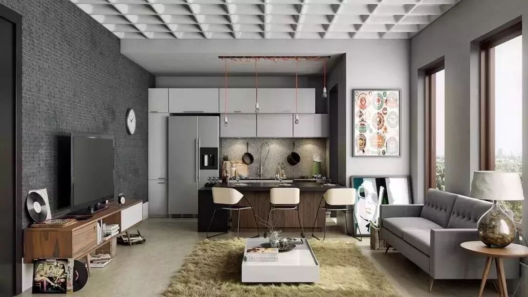 不是只要客厅与餐厅处在同一空间里就叫客餐一体化的,客餐一体化是指将沙发替换成长桌或者吧台一类的布置方式,这种让空间没有界限的设计不但能增大两个空间的面积,还能在视觉上更加开阔,非常不错。